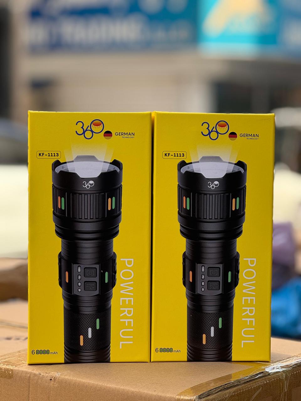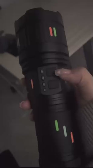 Product Name: The Most Potent Torch Material Composition: Aluminum Alloy Dimensions of the Torch: 26.8*6.6*5.2 cm / 110.55*2.6*2.05 inches Integrated Battery: 60000mAh High-Capacity Rechargeable Battery Power Bank Capability: Yes Charging Interface: Type-C USB Cable Modes Available: Low - Medium - High - SOS + Maximum Brightness - Strobe (double click) Adjustable Focus: Telescopic Zoom